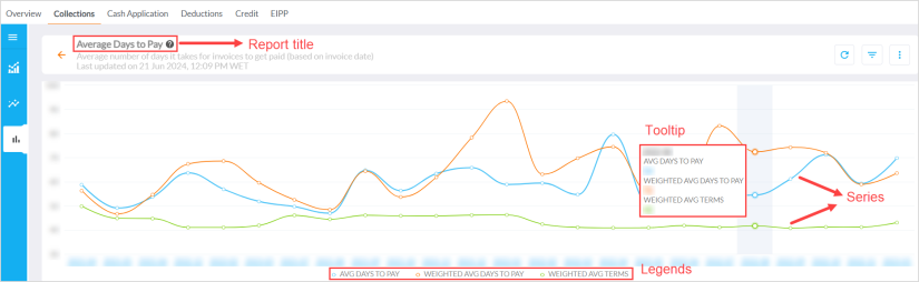 Tooltip - When you hover over a series or a point on the report, you can view a tooltip
